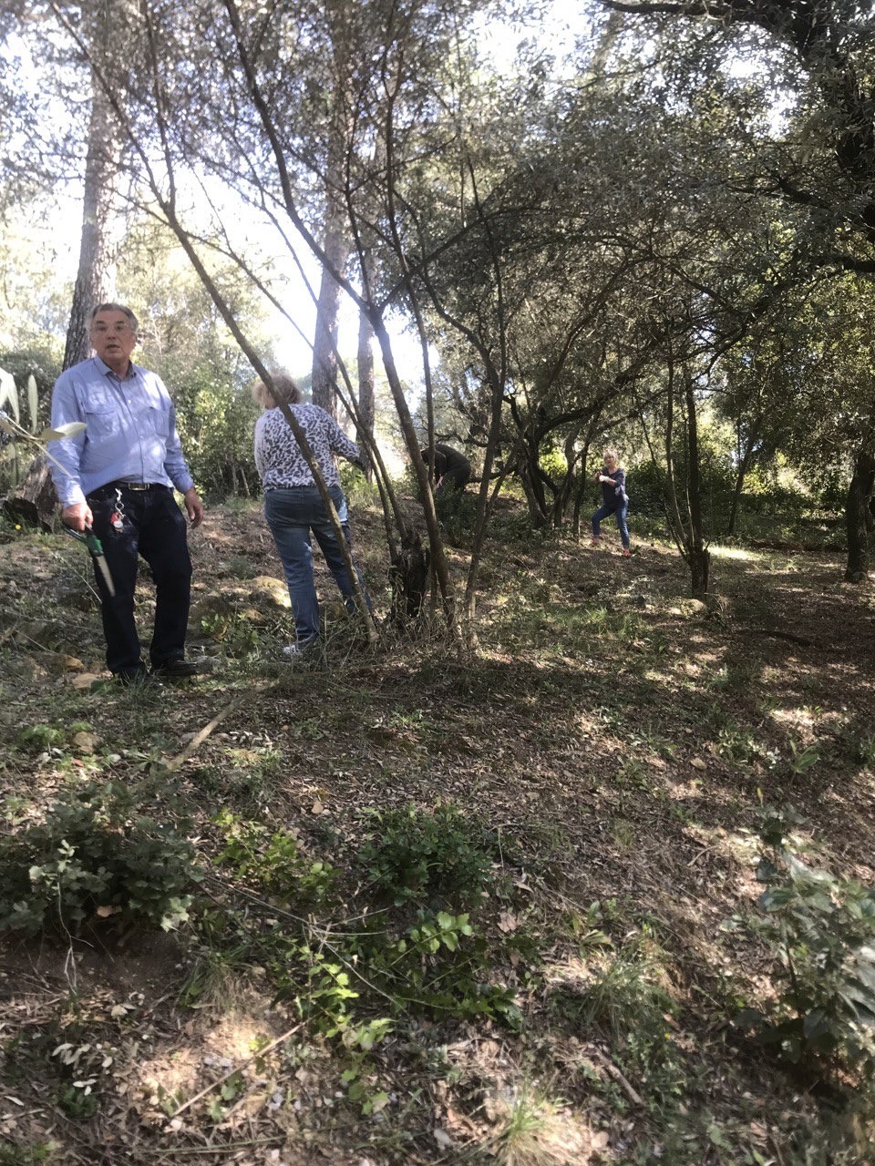 Yves, Aurore, Kathy, Charlette à la taille des oliviers